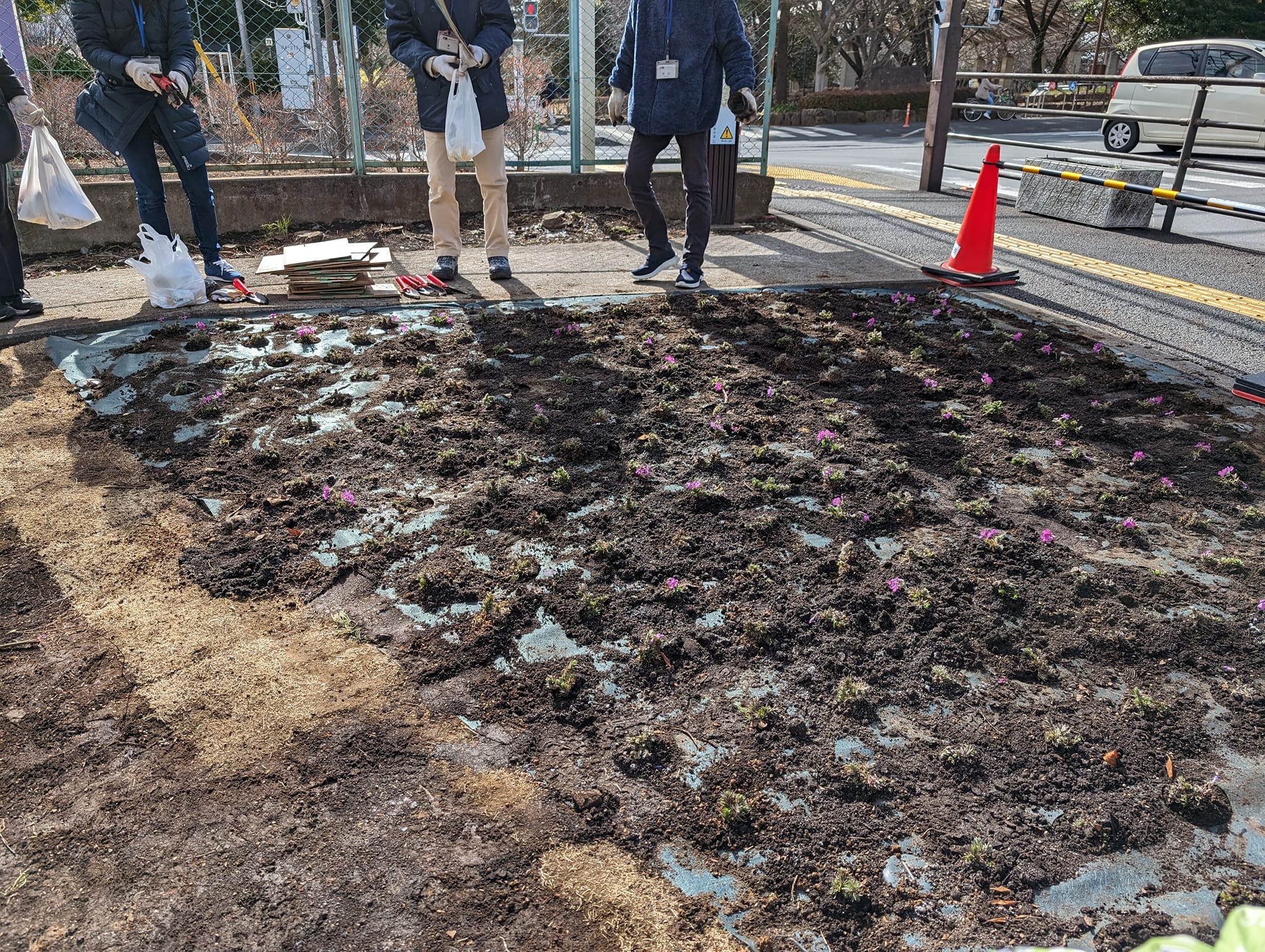 今回の整備箇所は、和光樹林公園の入り口付近(交番のそば)ですので、団地以外の方にも5月頃に咲く予定ですので、市民の皆様に見てもらえたら嬉しいです。